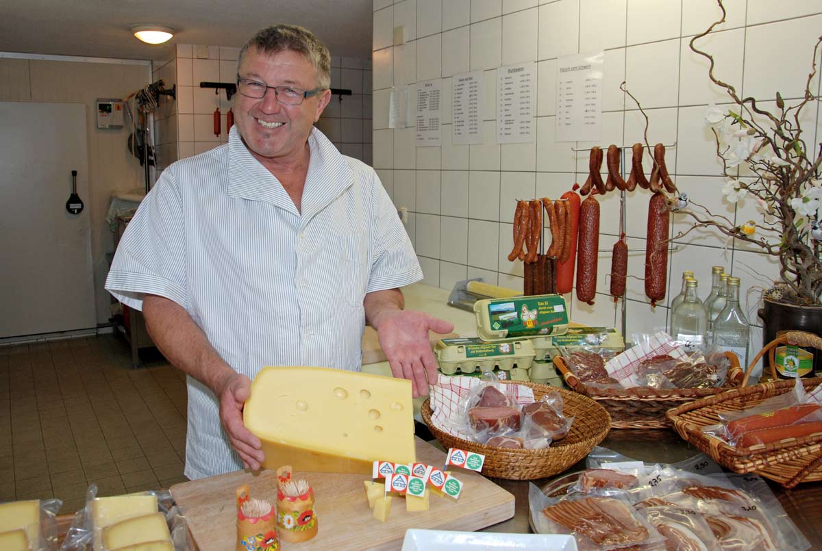 In Steiners Hofladen in Nesselwang erhalten Sie hochwertiges Rind- und Schweinefleisch aus eigener Tierhaltung – direkt vom Bauernhof. Unsere Weiderinder der Rassen Bayerisches Fleckvieh, Limousin und Wagyu liefern besonders zartes, aromatisches Fleisch. Durch traditionelle Dry-Aged-Reifung entsteht Premium-Fleisch für echte Genießer. Auch unser Schweinefleisch, hausgemachte Wurstwaren und BIO-Käse aus Allgäuer Sennereien stehen für Qualität, Frische und Regionalität.