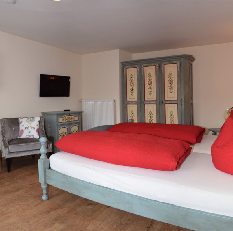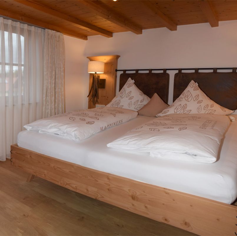 Kein Problem – unser gemütliches Doppelzimmer Allgäu bietet zusätzlichen Raum für Oma, Opa oder Freunde. Buchbar als Ergänzung zu den Ferienwohnungen.